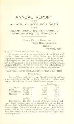 [Report 1919] / Medical Officer of Health, Hexham R.D.C.