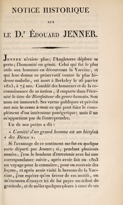 Credit: Notice historique sur le docteur Jenner, auteur de la découverte de la vaccine. Suivie de notes explicatives / par Louis Valentin. Source: Wellcome Collection.