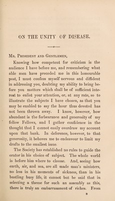 Credit: On the unity of disease : being the annual oration delivered before the Medical Society of London, in commemoration of its ninety-third anniversary, March 8, 1866 / by Weeden Cooke. Source: Wellcome Collection.