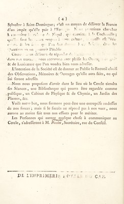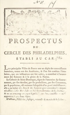 Prospectus du Cercle des Philadelphes, établi au Cap.