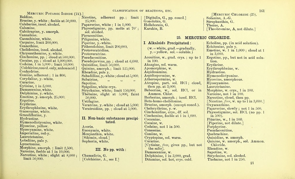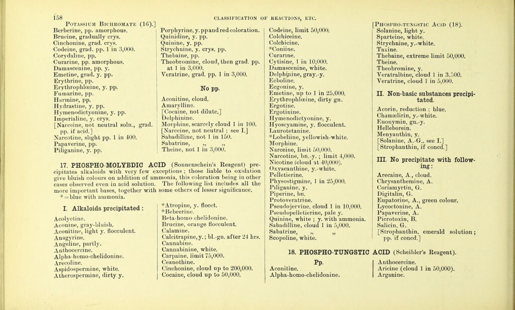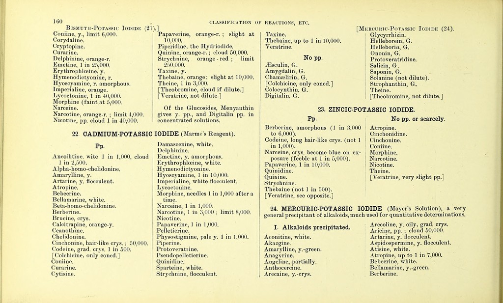 Credit: Dictionary of the active principles of plants: alkaloids : bitter principles; glucosides; their sources, nature, and chemical characteristics / with tabular summary, classification of reactions, and full botanical and general indexes. By Charles E. Sohn. Source: Wellcome Collection.
