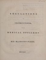 Copy 2 Note: With errata slip at end and inserted Admiralty Circulars and Memoranda, as follows: Circular, No. 23 [on the procedure for issuing 'hurt certificates' for ruptures. 12 Nov. 1827]. 2 leaves (last blank) 4to. [London: s.n. 1827] Circular, No. 27 [on the supply of various stores to ships' surgeons by the pursers. 15 Dec. 1827]. 2 leaves 4to. [London: s.n. 1827] Circular, No.44 [on the invaliding of officers from foreign stations. 18 Feb. 1829]. 2 leaves (last blank). 4to. [London: s.n. 1829] Memorandum [laying down regulations for the establishment of sick messes on board ship. 4 May 1833]. p. 2, 1 l. 4to. [London: s.n. 1833] Memorandum [on the procedure for charging for savings of fresh meat, when not issued in the sick mess. 6 Nov. 1833] 1 l. 4to. [London: s.n. 1833] Memorandum [requiring medical officers to return their stores at the end of each commission. 21 June 1834]. 1 l. 4to. [London: s.n. 1834]