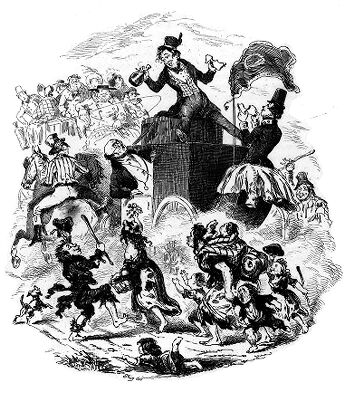 Credit: M0012154: Reproduction of an illustration depicting "Bob Sawyer on roof of chaise" from Charles Dickens' Posthumous Papers of the Pickwick Club, 1837. Source: Wellcome Collection.