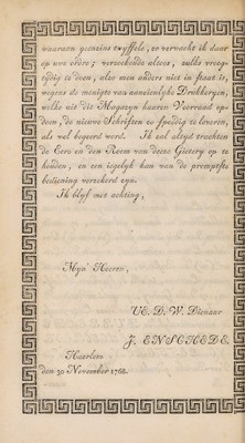 Proef van letteren welke gegooten worden in de nieuwe Haerlemsche lettergietery van J. Enschedé. 1768.