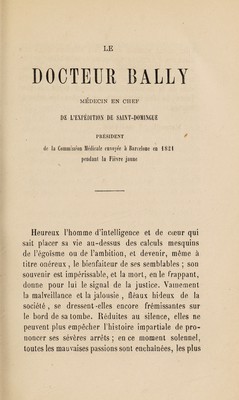 Le Docteur Bally : médecin en chef de l'expédition de Saint-Domingue, Président de la Commission Médicale envoyée à Barcelone en 1821 pendant la fièvre jaune, mort à Salon (Bouches-du-Rhône) le 21 avril 1866 / par Evariste Bertulus.