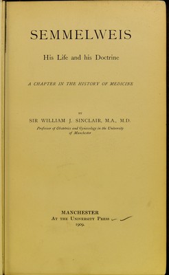Semmelweis his life and doctrine : a chapter in the history of medicine / by William J. Sinclair.
