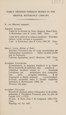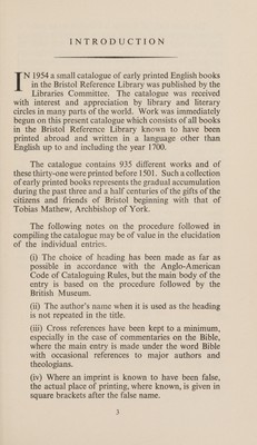 A catalogue of books in the Bristol Reference Library which were printed abroad in languages other than English during the years 1473-1700 / City and County of Bristol Public Libraries.