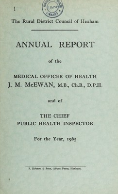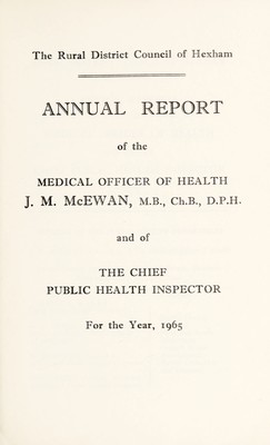 Credit: [Report 1965] / Medical Officer of Health, Hexham R.D.C. Source: Wellcome Collection.