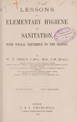 Lessons on elementary hygiene and sanitation with special reference to the tropics / by W.T. Prout.