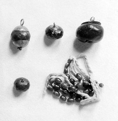 Credit: M0016752: Woman wearing a bridal costume adorned with amulets, from La Alberca, Salamanca Province / M0016753: Amber facetted beads and a neckalce for a teething child. Source: Wellcome Collection.