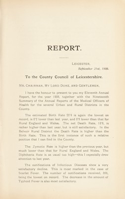 [Report 1908] / Medical Officer of Health, Leicestershire / County of Leicester County Council.