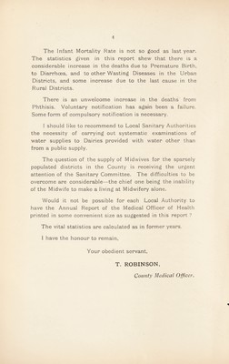 Credit: [Report 1908] / Medical Officer of Health, Leicestershire / County of Leicester County Council. Source: Wellcome Collection.