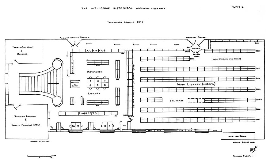 Credit: M0007781: Floor plan of the Wellcome Historical Medical Library, second floor. Source: Wellcome Collection.