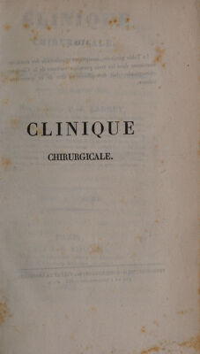 Clinique chirurgicale : exercée particulièrement dans les camps et les hopitaux militaires, depuis 1792 jusqu'en 1829 [1832,1836] / par le baron D.J. Larrey.