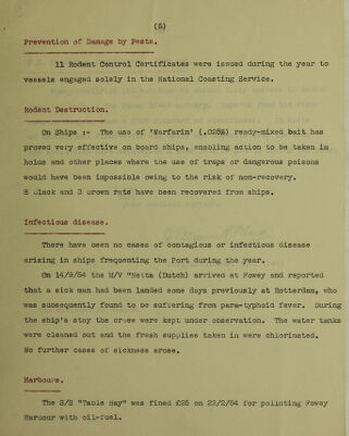[Report 1954] / Medical Officer of Health, Fowey Port Health Authority.