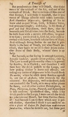 Credit: A treatise of warm drink ... Intersprest [sic] with divers observations touching the drinking of cold water / [F. W]. Source: Wellcome Collection.
