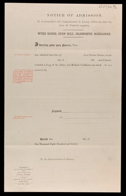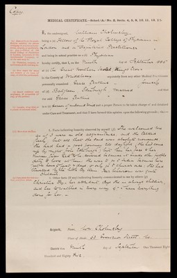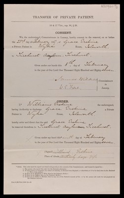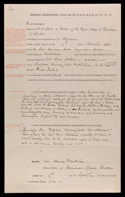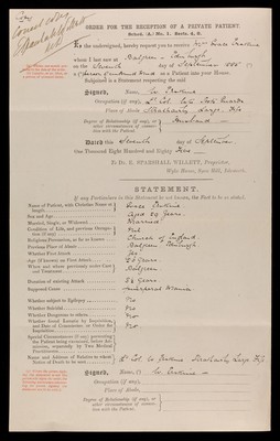 Credit: Patient Certificates and Notices: Admission date 1887. Source: Wellcome Collection.