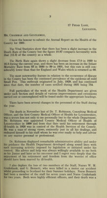 [Report 1931] / Medical Officer of Health, Leicestershire / County of Leicester County Council.