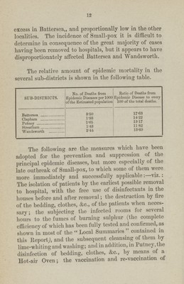 Credit: [Report of the Medical Officer of Health for Wandsworth District, The Board of Works (Clapham, Putney, Streatham, Tooting & Wandsworth)]. Source: Wellcome Collection.