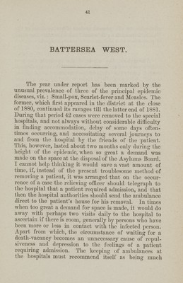 [Report of the Medical Officer of Health for Wandsworth District, The Board of Works (Clapham, Putney, Streatham, Tooting & Wandsworth)].