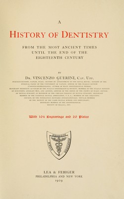 A history of dentistry from the most ancient times until the end of the eighteenth century / by Dr. Vincenzo Guerini ... with 104 engravings and 20 plates.