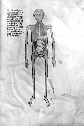 Credit: M0007581B: Manuscript illustration of an anatomical figure from <i>Anothomia Philippi Septimi</i>, 1345. Source: Wellcome Collection.