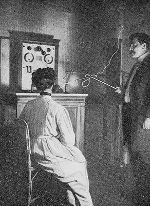 Credit: M0015159: Illustration demonstrating the treatment of malignant tumours by electrical currents. Source: Wellcome Collection.