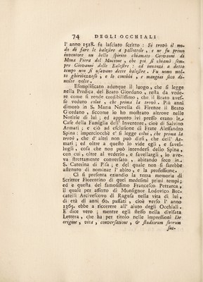 Degli occhiali da naso inventati da Salvino Armati, gentiluomo fiorentino, trattato istorico / [Domenico Maria Manni].