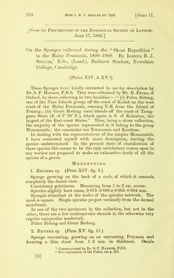 ![ON THE SPONGES COLLECTED DURING THE “SKEAT EXPEDITION” TO THE MALAY PENINSULA, 1899—1900. Bt igerna b. j. SOLLAS, B.Sc. (Lond.), Bathurst Student, Newnham College, Cambridge. [From the Peocebdings of the Zoological Society of Lojidon, June 17, 1902.] .](https://iiif.wellcomecollection.org/image/b22406414_0003.jp2/full/800%2C/0/default.jpg)