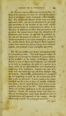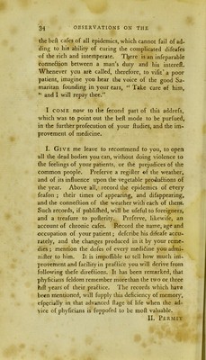 ![APPENDIX: CONTAINING] THE NEW METHOD OF Inoculating for the Small-Pox. ©SLIVERED IN A LECTURE IN THE UNIVERSITY OF PENIlf SYJLVANIA, ON THE 20th OF FEBRUARY} ALSO, OBSERVATIONS ON THE Duties of a Phyfician, AND THE METHODS OF IMPROVING MEDICINE, ACCOMMODATED TO THE PRESENT STATE OF SOCIETY AND MANNERS IN THE UNITED STATES. * DELIVERED IN THE UNIVERSITY OF PENNSYLVANIA, ON THl} 7th OF FEBRUARY 1789, AT THE CONCLUSION OF A COURSE OF LECTURES U PON CHEMISTRY AND THE PRACTICE OF PHYSIC. PUBLISHED AT THE REQUEST OF THE CLASS. B Y BENJAMIN RUSH, M. D. PROFESSOR OF CHEMISTRY IN THE UNIVERSITY PENNSY L VANIA. THE SECOND EDITION WITH ADDITIONS. PHILADELPHIA: 9 mnted and sold by PRICHARD & HALLt in makKSvk STREET NEAR FRONT STRICT, W.O«C,lXXXIX,](https://iiif.wellcomecollection.org/image/b21690224_0003.jp2/full/800%2C/0/default.jpg)