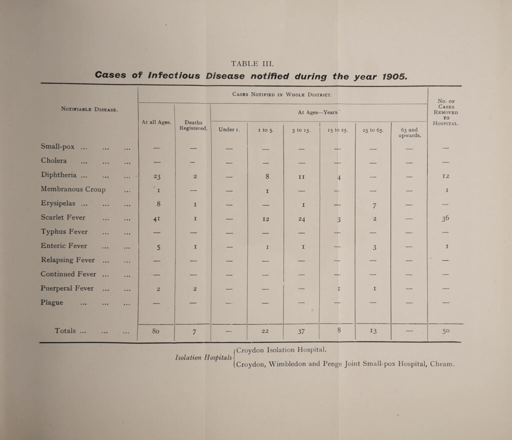 Credit: Annual report of the Medical Officer of Health for the Penge Urban District in the County of Kent for the year ending 31st December, 1905. Source: Wellcome Collection.