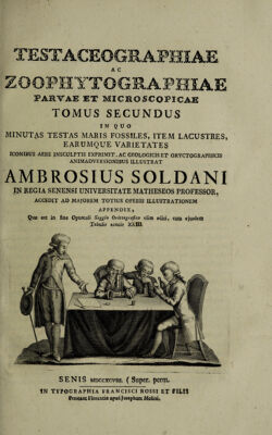 Testaceographiae ac zoophytographiae parvae et microscopicae ... / in qua minuta et minima testacea ac zoophyta maris nativa vasculis inclusa aeneisque tabulis insculpta describit et explicat Ambrosius Soldani ... accedit supplementum analysim continens marini sedimenti.