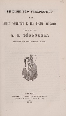 Su l'impiego terapeutico del bochet depurativo e del bochet purgativo / [Théodore Joseph Éléonord Pétrequin].