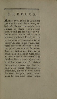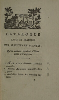 Catalogue latin et françois des arbustes et plantes qu'on conserve pendant l'hiver dans l'orangerie & la serrchaude. Faisant suite au Catalogue latin & françois des arbres ... qu'on peut cultiver en pleine terre / [Pierre-Joseph Buc'hoz].