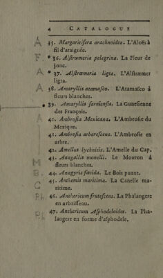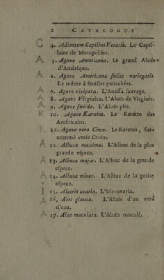 Credit: Catalogue latin et françois des arbustes et plantes qu'on conserve pendant l'hiver dans l'orangerie & la serrchaude. Faisant suite au Catalogue latin & françois des arbres ... qu'on peut cultiver en pleine terre / [Pierre-Joseph Buc'hoz]. Source: Wellcome Collection.