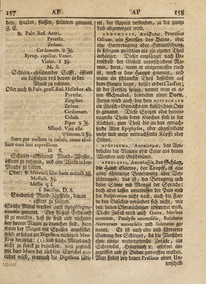 Credit: D. Johann Jacob Woyts, chemahligen öffentlichen Lehrers der Artzney-Kunst in Königsberg, Gazophylacium medico-physicum, : oder Schatz-Kammer, medicinisch- und natürlicher Dinge, in welcher alle medicinische Kunst-Wörter, inn- und äusserliche Kranckheiten, nebst dererselben Genes-Mitteln, alle Mineralien, Metalle, Ertzte, Erden, zur Medicin gehörige fremde und einheimische Thiere, Kräuter, Blumen, Saamen, Säffte, Oele, harze u. alle rare Specereyen und Materialien, in einer richtigen lateinischen Alphabet-Ordnung auf das Deutlichste erkläret, vorgestellet, und mit einem nöthingen Register versehen sind. Source: Wellcome Collection.