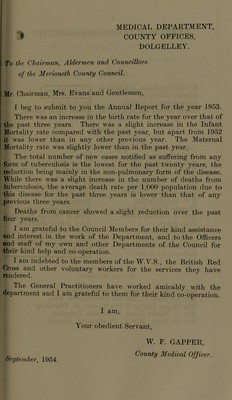 [Report 1953] / Medical Officer of Health, Merioneth County Council.