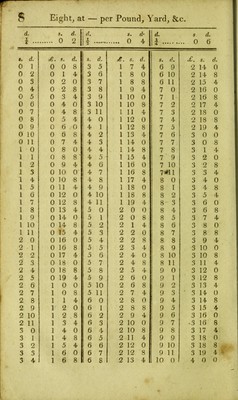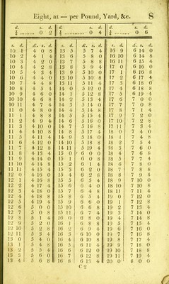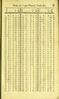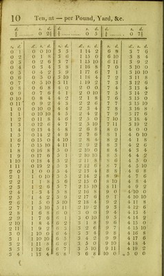 Credit: The readiest reckoner ever invented, : for assisting the tradesman, the merchant, the gentleman, &c. in finding the amount, at any given price, of any number from one to ten thousand. ... The whole constructed, and separately calculated, / by Stephen Simpson and Edward Wise, accountants. Source: Wellcome Collection.