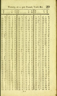 Credit: The readiest reckoner ever invented, : for assisting the tradesman, the merchant, the gentleman, &c. in finding the amount, at any given price, of any number from one to ten thousand. ... The whole constructed, and separately calculated, / by Stephen Simpson and Edward Wise, accountants. Source: Wellcome Collection.
