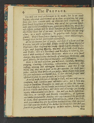 Credit: Thesaurus remediorum. A treasury of choice medicines internall and externall. Exactly composed according to art, peculiarly and properly fitted and appointed against the infirmities of the principall parts of mans body ... Whereunto is added, diagnostic signs to know the temperament and constitution of each body; with a physicall dyet and select counsels for each complexion ... / [Julius Degravere]. Source: Wellcome Collection.