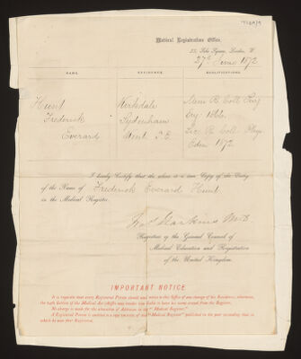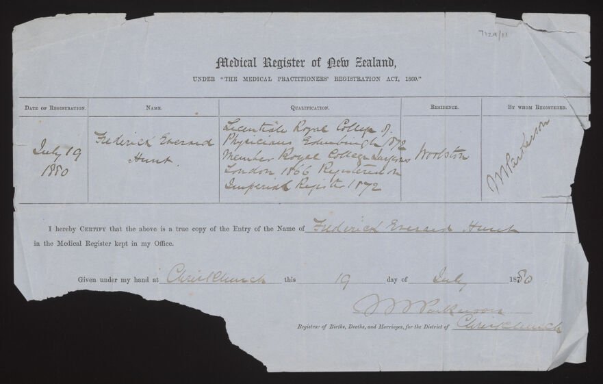 Hunt, Frederick Everard (1840-1900), M.R.C.S., L.R.C.P. (Edin.), son of F.K. Hunt