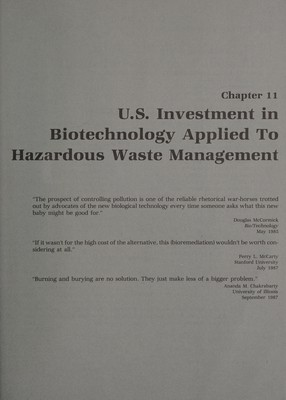 New developments in biotechnology : U.S. investment in biotechnology.