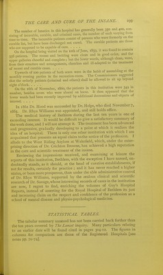 The care and cure of the insane : being the reports of The Lancet Commission on Lunatic Asylums, 1875-6-7 for Middlesex, the City of London and Surrey with a digest of the principal records extant and a statistical review of the work of each asylum from the date of its opening to the end of 1875 / by J. Mortimer Granville.