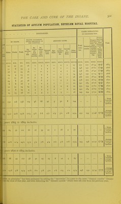 ![COMPARATIVE TABLE OF FACTS, BETHLEM ROYAL HOSPITAL. Year. ADMISSIONS. Proportion per cent of the Sexes in.this Hospital. Proiiortion per cent, of the Sexes In Registered Hospitnlji generally. Males. Fomls. Males. Femls. Average age at admis- sion. RECOVERIES. Proportion per cent, of the Sexes in this Hospital. Males. Proportion per cent, of the Sexes in Registered Hospitals generally. Femls. Males. Femls. i86s 1866 1867 1868 1869 1870 1871 1872 1873 1874 Gross number or pr portion, )er \ I. 44-86 42- 78 40- 69 37-32 41- 67 43- 83 34-64 41- 36 42- 79 40-25 II. 55- 14 57- 22 59-31 62-68 58- 33 56- 17 65-36 58- 64 57- 21 59- 75 Average age at re- covery. UEATH.S. Proportion per cent of the Sexes In tills Hospital. Males. Femls. 41-08 58-92 Average niiniljer or pro- portion. 41 02 58-98 III. 48- 45 46-48 46-57 46-51 45 58 49- 71 53-35 49 84 47 42 49-50 48-38 Proportion per cent of the Sexes in Registered Hospitals generally. Males. Femls. IV. 51- 55 53-52 53'43 53-49 54 42 50 29 46 65 5016 52- 58 50 50 48-34 51 -62 51-66 V. 38-0 36- 5 34- 3 37- 3 33-5 33-0 32-3 30-2 35- 6 36- 3 34-7 Average age at death. VI. 40- 00 41- 18 32- 41 33- 00 30-36 34- 48 32-71 34-12 28-44 32-03 33-86 33-87 VII. 60-00 58-82 67-59 67*00 69-64 65-52 67-29 65-88 71-56 67-97 66-14 VIII. 40- 83 38- 56 36- 81 39- 00 38-75 41- 81 41-16 41 -96 37- 43 38- 27 39-39 66-13 39-46 IX. 59-17 61-44 63-19 61 00 61- 25 58-19 58-84 58-04 62- 57 61-73 60-61 60-54 X. 33'4 36-8 31- 1 36-1 32- 3 29-4 33- 7 27-9 36-2 34- 6 33 2 XI. 45-45 57-89 62-07 60-87 39-29 75-00 50-00 50-00 57-89 50-00 55-46 54-85 XII. 54-55 42-11 37'93 39-13 60-71 25-00 50-00 50-00 42-11 50-00 44*54 45 15 XIII. 58-52 61 02 56-77 58 05 60 09 61-27 64-44 53-57 58-79 63 59 59 69 59-61 XIV. 41-48 38- 98 43-23 41-95 39- 91 38-73 35- 56 4643 41-21 36- 41 40-31 40-39 XV. 46-4 51-4 41- 6 45-8 38-9 36-1 44-4 43-8 491 42- 7 44 o Abstract of the above particulars for the five years 1865 to 1869 inclusive. Proj Uoii cent Keci tries cat)* Decn cui-:il XV! 26) 29- 4 27- '! 25- ( 26- 3 26- j 28- 0 22-8 27- 1 30- 7 27-0 f Gross >. ■ number 1 or pro- 1 portion. 41-37 58-63 46-69 53-31 35-44 64-56 38-76 61-24 52-89 47-11 58-91 41 09 Aver.ige , number 1 or pro- j portion. * 41-46 58-54 46-72 53-28 35-9 35-39 64-61 38-79 61-21 33 9 53ii 46 89 58-89 41 n 44-8 27-0 Abstract of the above particulars for the five years 1870 to 1874 inclusive. Gross . numl>er 1 or pro- ) portion. 1 40-80 59-20 49-86 5014 32-29 67-71 40 00 60 00 58-12 41-88 60-48 39-52 Average, numlier 1 or pro- [ portion.' 40-57 59-43 49 96 50 04 33-5 32-36 67-64 40-13 59-87 32-4 56-58 43-42 60-33 39-67 43-2 i (a) This percentage is upon cases Deemed curable brought over from previous year [Statistics of A Jr-opu ation, col. XXX.], and Cases deemed curable on admission [col. \\. il'id.\ If the calculation had been upon bases obtamed by the method employed in estimating the number of cases - deemed curable on admi.ssion ■'for and borough asyliuns (see note, p. 300), the .average annual proportion in this column (xvi.). for the ten years have been 35-71, instead of 27-01, as above ; for the five years 1865-9, 35-31 ; and for the period 1870-4, 36-11.](https://iiif.wellcomecollection.org/image/b21292772_0001_0318.jp2/full/800%2C/0/default.jpg)
