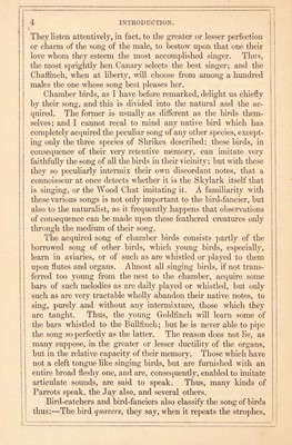 Chamber birds: their natural history, management, habits, food, diseases, treatment, breeding, and the methods of catching them / By J.M. Bechstein, M.D. Translated from the last German ed., by W.E. Shuckard. To which are added observations compiled from the works of British naturalists.