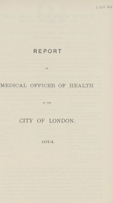 Credit: [Report of the Medical Officer of Health for London, City of ]. Source: Wellcome Collection.