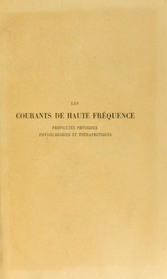 Credit: Les courants de Haute Frequence : proprietes physiques physiologiques et therapeutiques / par Le Docteur J. Denoyes. Source: Wellcome Collection.