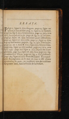 ![L | I L pre PF se, o E À 1 acez Le mot debien pag. 1.ligners. lif. fpatule. P Age 2. ligne 8. lifez drogues. page 14. ligne ro. eff J D page 22. lg.8.lfez Glycyrrhizæ. page 22. au 2. vers offez la sd ss Da n. page 38. lig.10.Hf. le lever. page ar. ligne 18. fez intention pour int tién. page 43. ligne 27. lifez celle. page 47. ligne 25. bfez à quoy bon mettre, page 82, lig. 12. lifez Theriaque. page 95. au 1. vers & a la 3. ligne J;fex Glycyrrhiza. page 102. ligne 23. life cordial, page 103. au 9. vers lifez cafis. page 111. ligne 9. Jifez au païs des Tro- lodytes. page 145. ligne 218. lifez bien. page 1$ 9 lig. remiere /:/ez Thym. page193.lig. 4. life pl lufeurs. sh ligne 16. /ifez Noix Mufcates. I] yaquel- xemplaires où le mot de fyn+ a efté obmis nn q# Æ au troifiéme vers dutroifiéme iyrame latin, dans la feuille de la Preface, EX) JQ ti D Le © | # = 3 La](https://iiif.wellcomecollection.org/image/b32992233_0355.jp2/full/800%2C/0/default.jpg)
