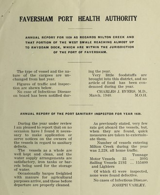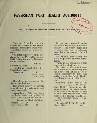 [Report 1939] / Medical Officer of Health, Faversham Port Health Authority.