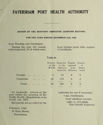 Credit: [Report 1939] / Medical Officer of Health, Faversham Port Health Authority. Source: Wellcome Collection.